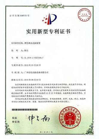 淋雨試驗(yàn)裝置-實(shí)用新型專(zhuān)利證書(shū)【岳信公司】
