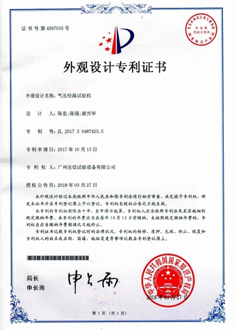 壓力浸水試驗(yàn)機(jī)-外觀專(zhuān)利證書(shū)【岳信公司】